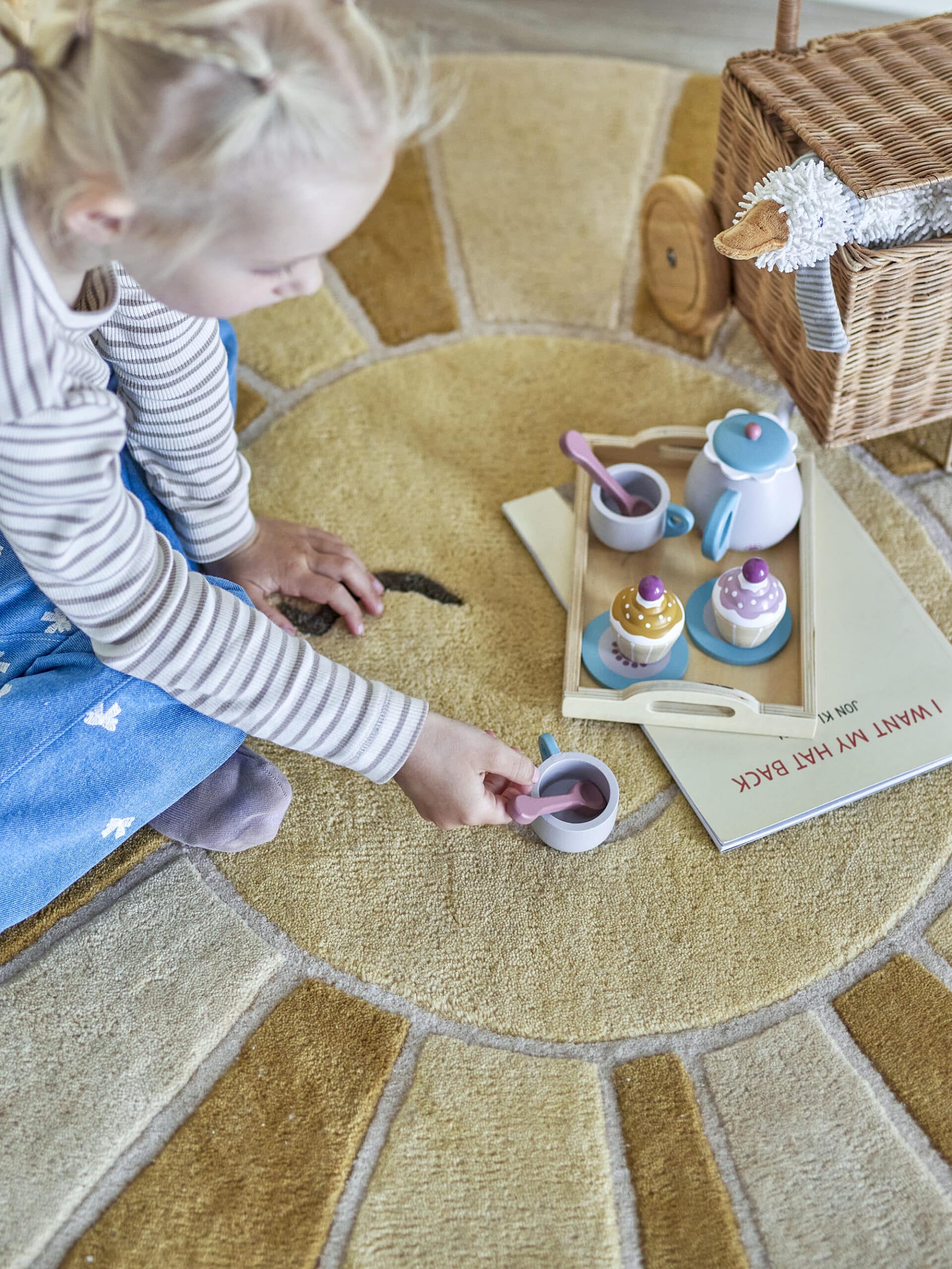 Prachtig Vloerkleed Zon voor in de baby- of kinderkamer van Bloomingville. Gemaakt van 100% wol. Een echte leuke blikvanger in de baby- of kinderkamer! Afmetingen: Ø 110 cm.
