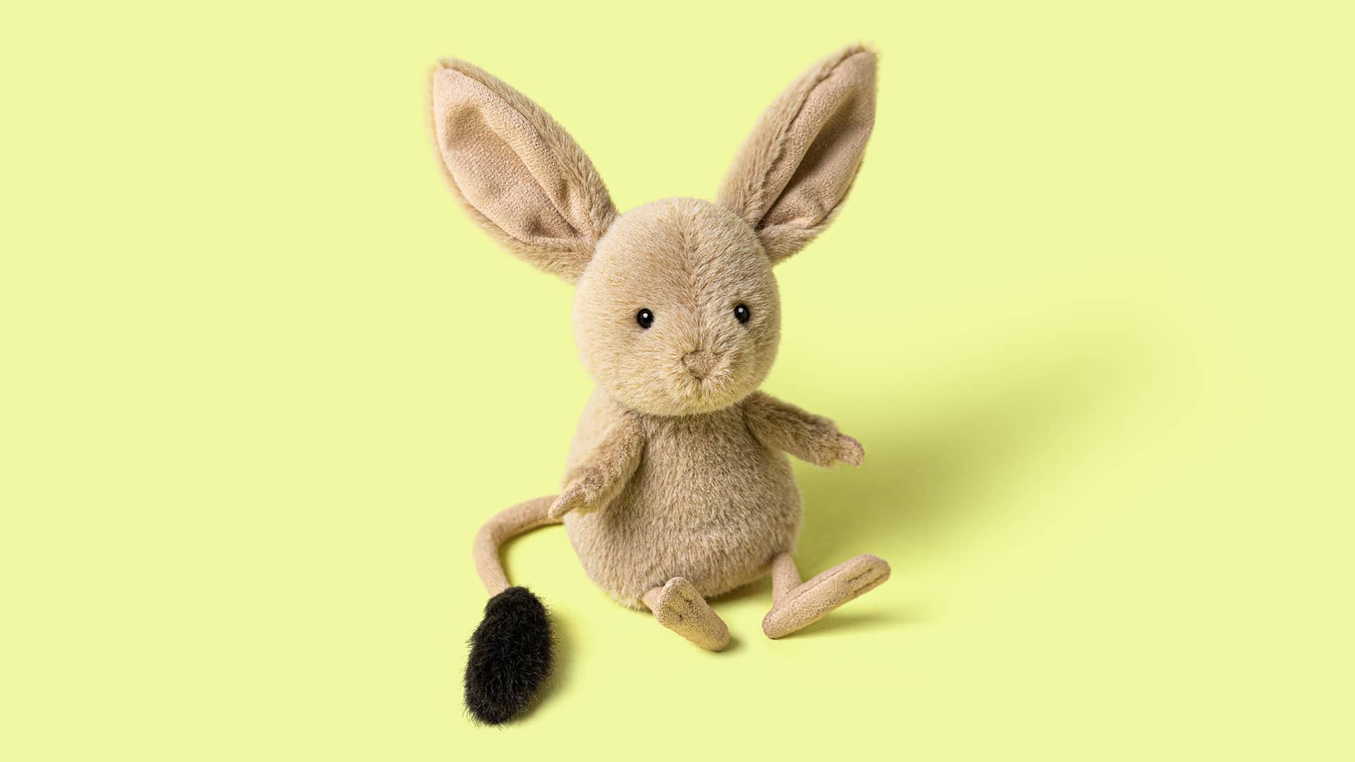 Lieve Knuffel Rat Jerboa van Jellycat. Afmetingen: 14 x 6 x 9 cm. De kleine Jerboa mag dan bescheiden van formaat zijn, zijn persoonlijkheid is groots. Deze charmante knuffel van Jellycat is dol op cultuur en zit het liefst op de eerste rij bij ballet, opera of toneel. Met zijn opvallend grote oortjes en nieuwsgierige blik steelt hij gegarandeerd de show.